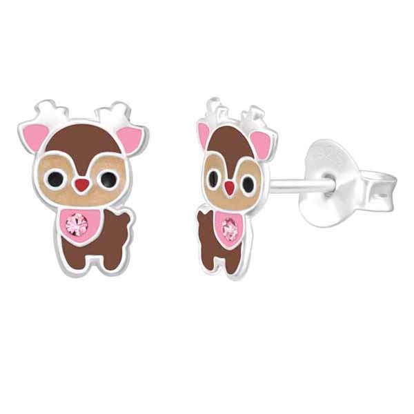 Hopeakorvakorut joulupukin poro reindeer Lasten hopeiset poro-korvakorut. Suloiset lasten hopeiset korvakorut ruskealla porolla ja vaaleanpunaisilla yksityiskohdilla. Poroa koristavat pinkit zirkonit.... Lue lisää
