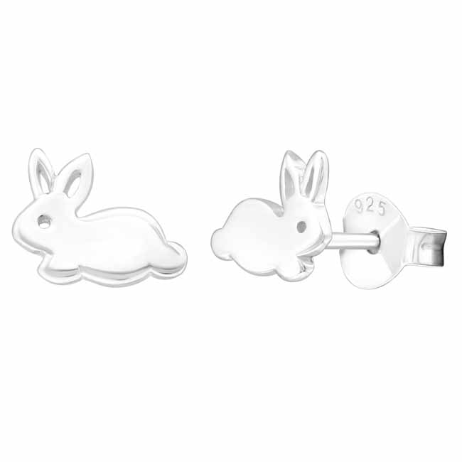 Lasten hopeiset korvakorut kaneilla. Hellyyttävät pupu-korvakorut, joissa seikkailee suloinen jänis. Korvakoruissa on luotettava tappikiinnitys. Korvakorujen koko on 8 x 6 mm. Sirot ja kevyet nappikorvakorut, joita lapsi voi käyttää arjessa! Korvakorujen valmistusmateriaali on laadukas nikkelitön 925 sterling hopea.
