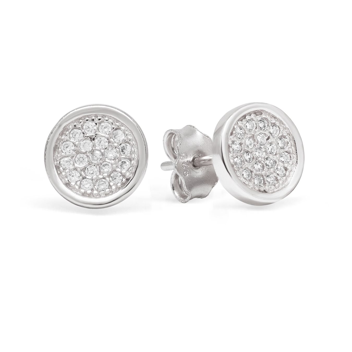 Tyylikkäät pyöreät hopeakorvakorut kirkkailla kivillä. Litteä vain 1,7mm korkea malli.
