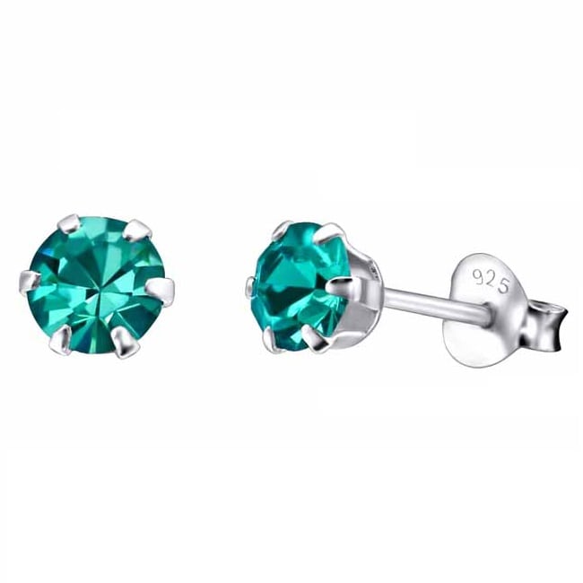 Hopeakorvakorut turkoosi zirkonia 5 mm