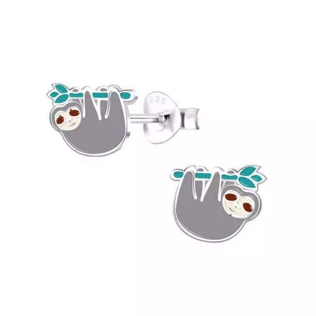 Hopeakorvakorut riippuva laiskiainen sloth Lasten hopeiset laiskiainen-korvakorut. Suloiset korvakorut laiskiaisilla, jotka roikkuvat oksassa. Korvakorun koko on 8 x 7 mm. Korvakoruissa on luotettava... Lue lisää