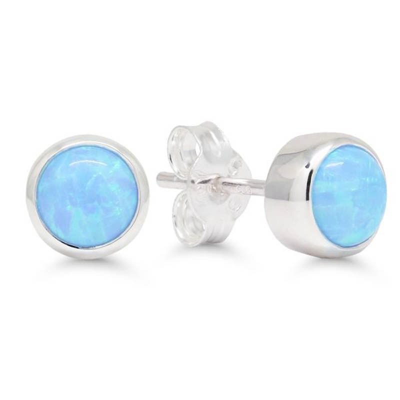 Kauniin hopeakorvakorut syntettisella opaali kivellä. Pyöreä kaunis muoto.