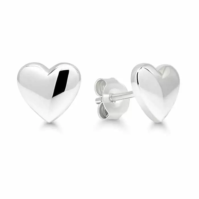 Hopeiset sydänkorvakorut kiiltävällä pinnalla. Korvakorun koko on 8 x 7,2 mm. Valmistusmateriaali on laadukas 925 Sterling-hopea. Korvakoruissa on tukeva ja luotettava tappikiinnitys.