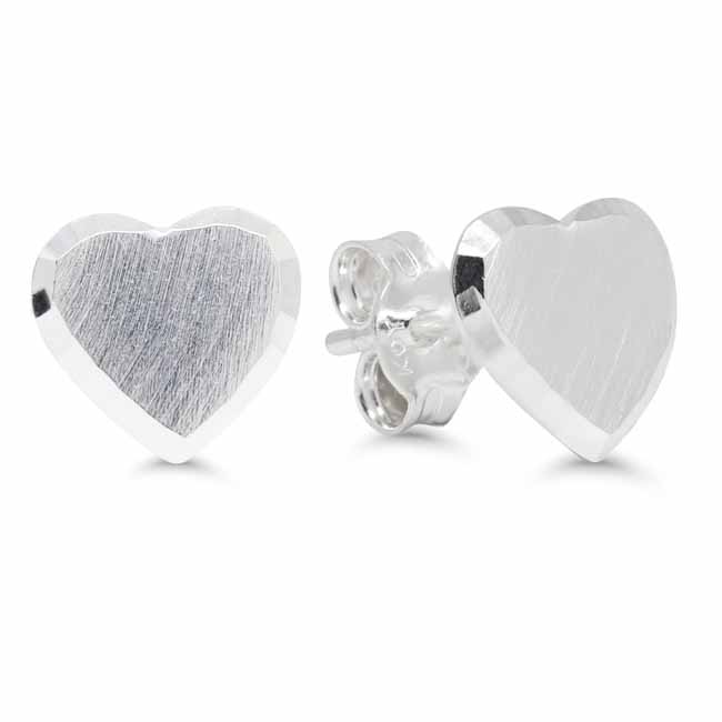 Kauniit hopeakorvakorut, jotka ovat sydämen muotoisia.