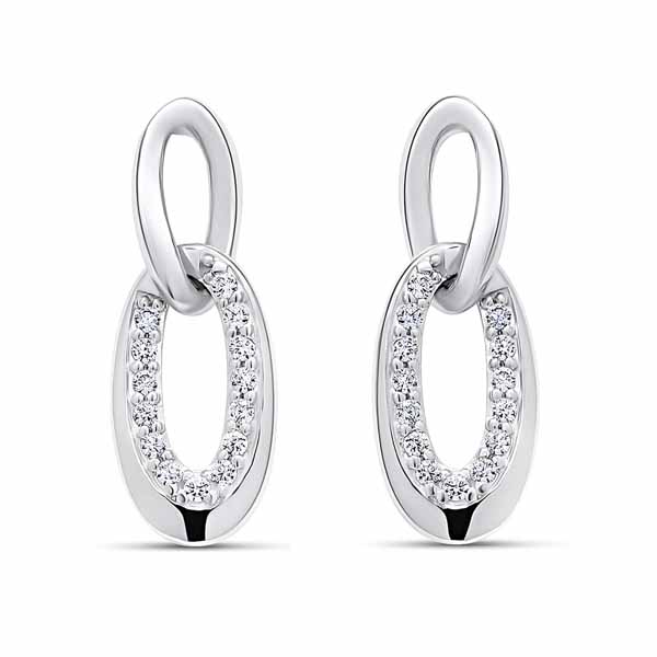 Ovaalin muotoiset hopeiset korvakorut zirkonia-korukivin koristeltuna. Korvakorun koko on 6,5 x 15,8 mm. Korvakoruissa on tukeva tappikiinnitys. Materiaali on 925 sterling-hopea.