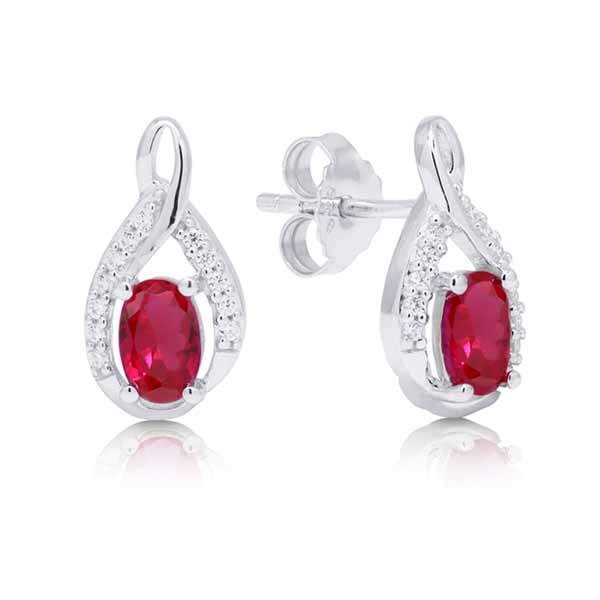 Pisaran muotoiset hopeiset korvakorut kirkkailla ja rubiininpunaisilla zirkonia-korukivillä. Korvakorun koko on 7,7 x 14,7 mm. Korvakoruissa on tukeva tappikiinnitys.