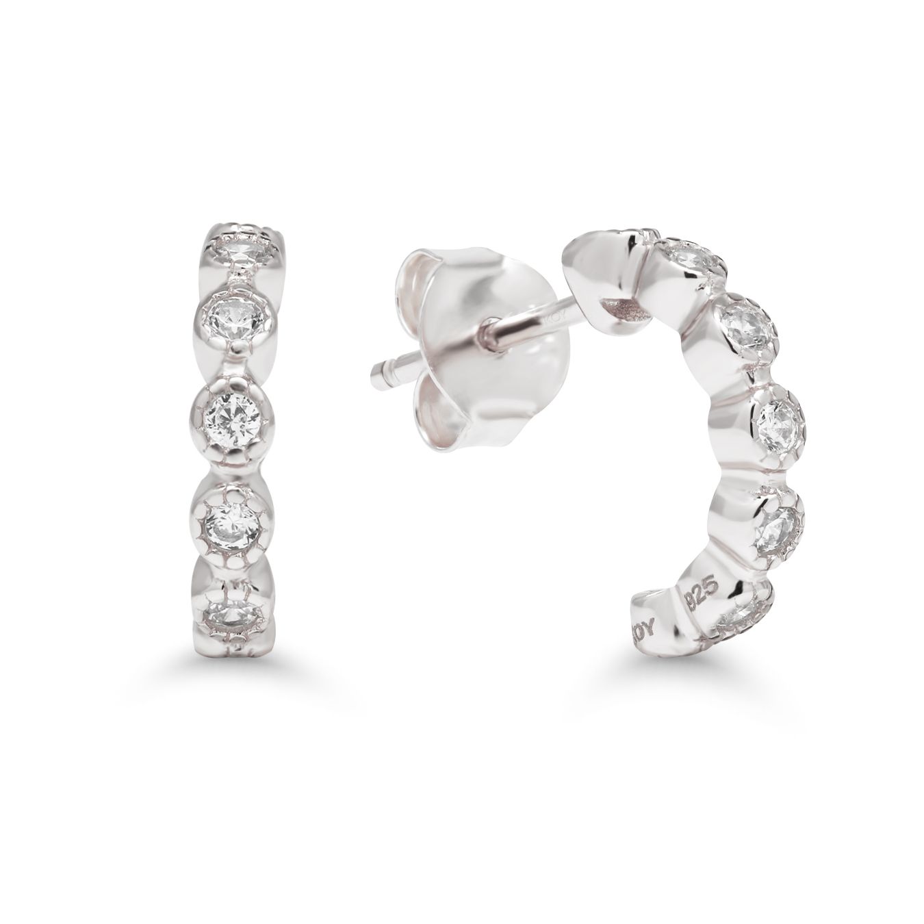 Hopeakorvakorut puolirengas kirkkailla zirkonikivillä. - 925/1000 hopeaa - Leveys 2,3mm - Korkeus 11,9mm