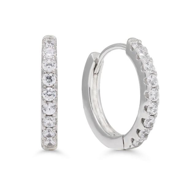 Hopeakorvarenkaat zirkoneilla -925/1000 rodinoitua hopeaa -Synteettiset zirkonit -Korkeus 15mm -Leveys 2,2mm