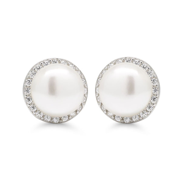 Hopeakorvakorut kirkkailla zirkoneilla ja makean veden helmellä. - 925/1000 hopeaa - Valkoinen makean veden helmi - Halkaisija 10mm - Helmi 8mm