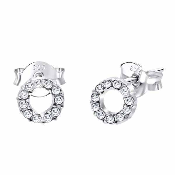 Hopeiset kehän muotoiset korvakorut kirkkailla zirkoni-korukivillä. Nappikorvakorujen koko on noin 5,5 mm ja niissä on luotettava tappikiinnitys. Valmistusmateriaali on laadukas nikkelitön 925 sterling hopea. Sirot hopeiset nappikorvakorut kulkevat erinomaisesti mukana arjessa ja sopivat moneen tyyliin!