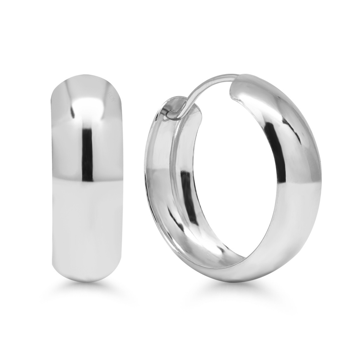 Kauniit ja käytännölliset naisten hopeiset korvarenkaat. Rengaskorvakorut on valmistettu laadukkaasta 925 hopeasta ja niiden kiinnitysmekanismina on kätevä saranakiinnitys. Nämä korvarenkaat ovat erittäin miellyttävät käyttää.