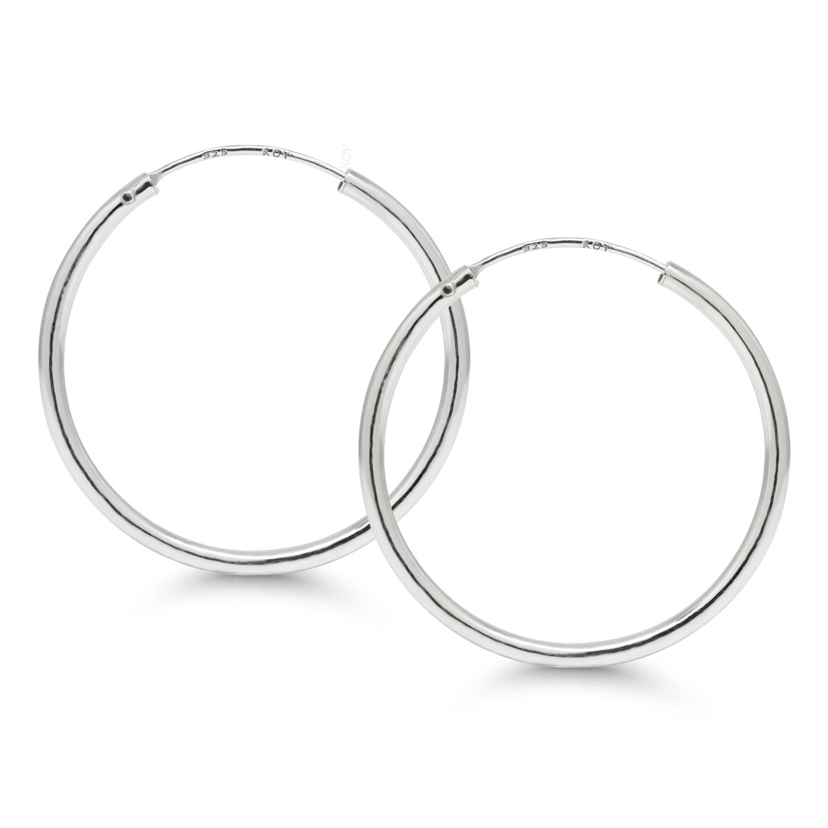Hopeiset putkikorvarenkaat, joiden rungon leveys on 1,6 mm. Rengaskorvakorut on valmistettu 925 hopeasta ja niissä on putkikiinnitys. Korvakorujen halkaisija on 25 mm.