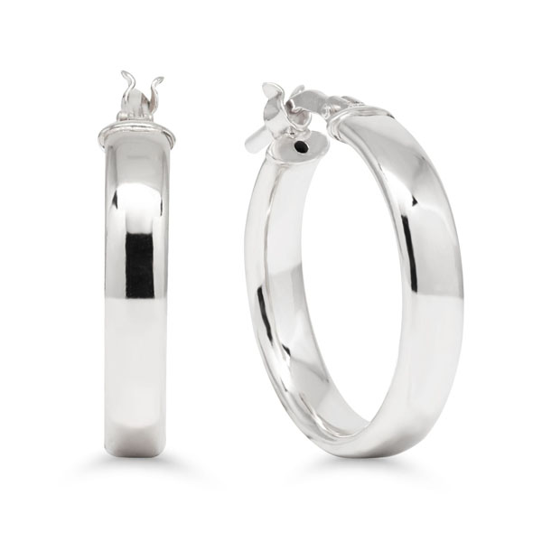 Klassiset hopeakorvarenkaat kiiltävällä ja sileällä pinnalla. Korvarenkaan halkaisija on 18 mm ja sen kiinnitysmekanismi on sarana. Klassikkoasuste, joka täydentää asun kuin asun!