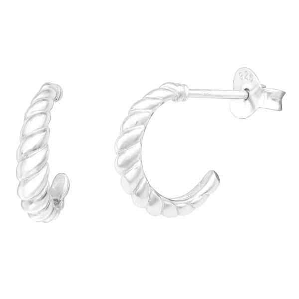 Hopeiset korvarenkaat tyylikkäällä kierteellä. Korvakoruissa on tappikiinnitys. Korvarenkaiden leveys on 3 mm ja halkaisija on 12 mm. Sirot ja kevyet rengaskorvakorut, joita voi käyttää arjessa! Korvakorujen valmistusmateriaali on laadukas nikkelitön 925 sterling hopea.