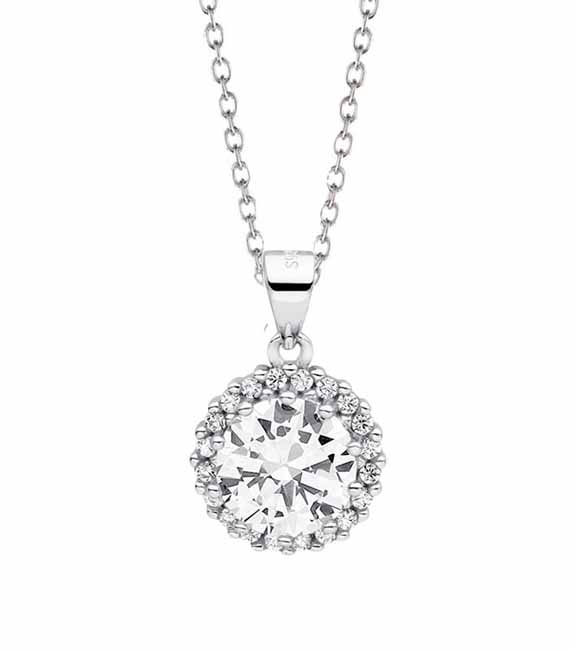 Hopeinen halo-riipus kirkkailla zirkonia-korukivillä. Hopeisessa riipuksessa isompaa kirkasta keskikiveä ympäröivät pienemmät korukivet. Riipuksen koko on 10 mm ja kaulakorun ketjun pituus on 45 cm. Valmistusmateriaali on laadukas nikkelitön 925 sterling hopea. Siro hopeariipus kulkee arjessa ilahduttaen mukana!