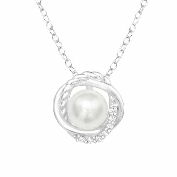 Hopeinen riipus helmi ja zirkoniat