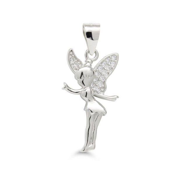 Hopeinen riipus keijukainen. Keijun siivet on koristeltu kirkkain zirkonia-korukivin. Riipuksen korkeus on 20 mm. Valmistusmateriaali on laadukas 925 sterling-hopea. Ei sisällä ketjua.