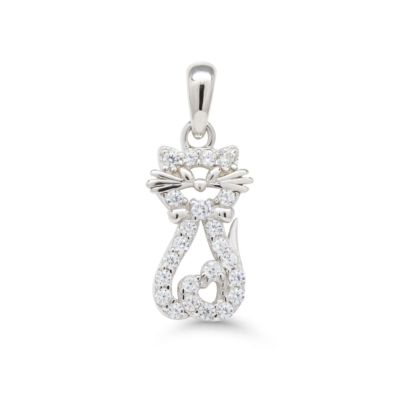 Hopeinen kissa riipus kirkkailla zirkonikivillä.
