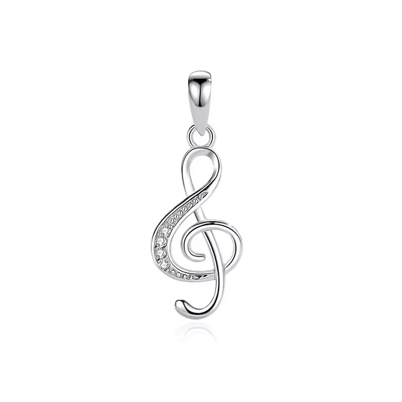 Hopeinen kaulakoru nuottiavaimella. Nuottiavain on koristeltu säkenöivillä kirkkailla zirkonia-korukivillä. Hopeariipus on kooltaan 10 x 25 mm riipuslenkkien kanssa. Valmistusmateriaali on laadukas nikkelitön 925 sterling hopea. Saatavilla ilman ketjua tai leveydeltään 1,35 mm hopeisen ankkuriketjun kanssa. Ketjun pituus on valittavissa oman tai lahjansaajan mieltymyksen mukaan väliltä 38 cm -50 cm. Riipus on ostettavissa myös ilman ketjua.