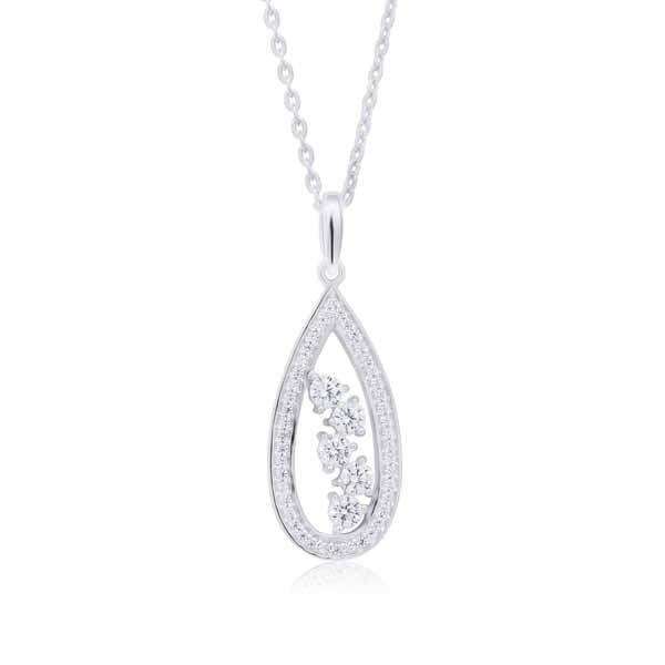 Pisaran muotoinen hopeinen kaulakoru, jota koristavat kirkkaat zirkonia-korukivet. Hopeaketju on kätevästi säädettävissä pituuksiin 40-45 cm. Materiaali on 925 sterling-hopea.