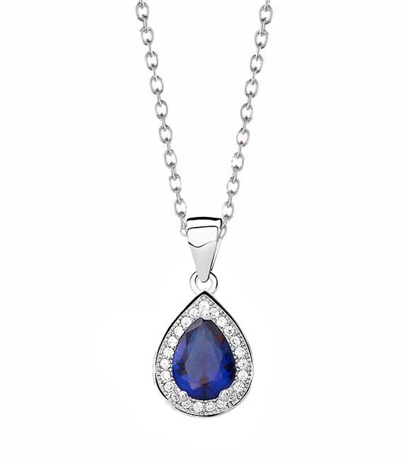 Hopeinen pisaran muotoinen riipus tummansinisellä keskikivellä. Sinistä zirkoniaa kehystävät kirkkaat korukivet. Kyynelriipuksen koko on 10 x 19 mm. Hopeaketjun pituus on 45 cm. Valmistusmateriaali on laadukas nikkelitön 925 sterling hopea. Siro hopeinen riipus on täydellinen asuste jokapäiväiseen käyttöön!