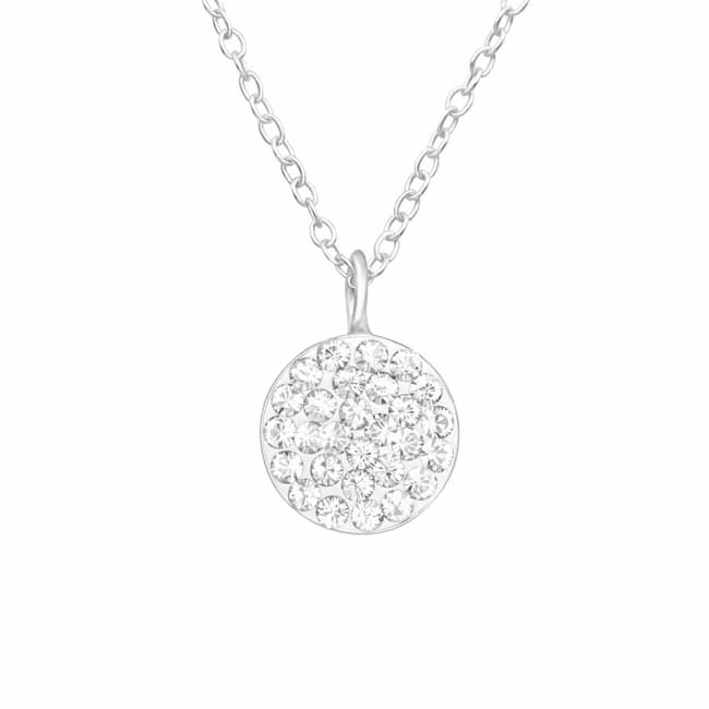 Hopeariipus pyöreä zirkonialaatta Hopeinen laattariipus säkenöivillä kirkkailla zirkoneilla. Hopeariipuksen koko on 9 x 9 mm ja sen ketjun pituus on 45 cm. Valmistusmateriaali on laadukas... Lue lisää