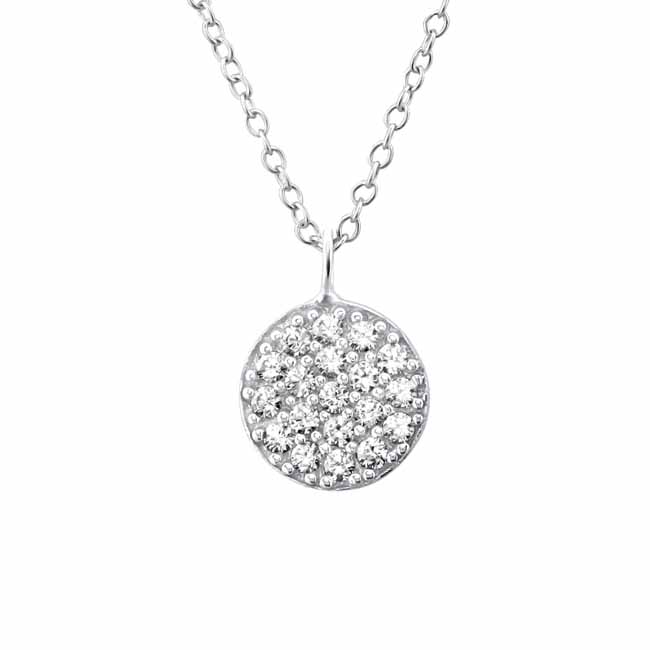 Hopeinen pyöreä riipus, joka on koristeltu kirkkailla zirkonia-korukivillä. Kauniin riipuksen koko on 10 mm. Ketjun pituus on 45 cm. Valmistusmateriaali on laadukas nikkelitön 925 sterling hopea. Siro hopeariipus kulkee arjessa ilahduttaen mukana!
