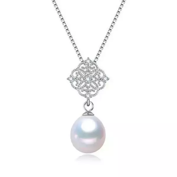 Kaunis hopeinen helmiriipus aidolla makeanveden viljellyllä helmellä ja kirkkailla zirkonia-korukivillä. Zirkoniat ovat koristeellisessa muodostelmassa. Makeanveden helmen koko on noin 8 mm. Riipuksen kokonaiskorkeus on noin 23 mm. Kaulakorun hopeisen venetsiaketjun pituus on 45 cm. Valmistusmateriaali on laadukas nikkelitön 925 sterling hopea. Klassisen kaunis helmiriipus ihastuttaa monessa eri tilaisuudessa! Koska kyseessä on aito helmi eli luonnontuote, voi helmen muodossa, sävyssä ja rakenteessa olla pieniä eroavaisuuksia tuotekuvan kanssa.