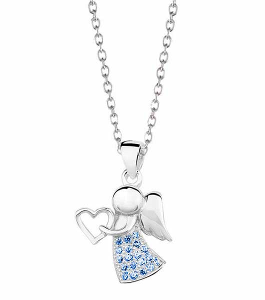 Hopeinen kasteriipus enkeli sininen Hopeinen kastekoru enkeli. Tässä suloisessa kasteriipuksessa esiintyy enkeli, joka pitelee sydäntä. Enkeli on koristeltu sinisillä zirkonia-korukivillä.... Lue lisää