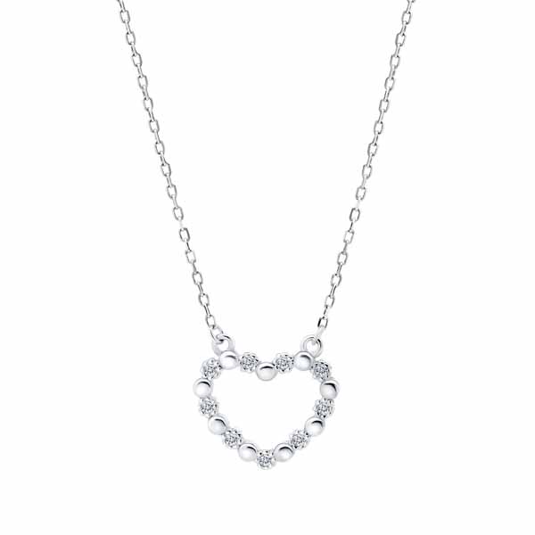 Hopeinen sydänkaulakoru säkenöivillä kirkkailla zirkoneilla. Hopeariipuksen ketjun pituus on säädettävissä pituuksiin 42 cm ja 45 cm. Valmistusmateriaali on laadukas nikkelitön 925 sterling hopea. Siro hopeinen kaulakoru on täydellinen asuste jokapäiväiseen käyttöön!