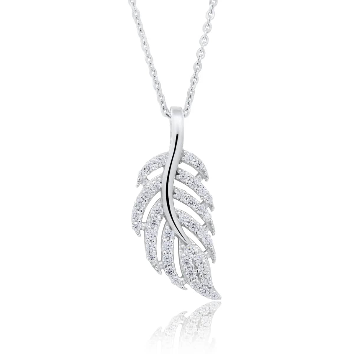 Viehättävä lehden muotoinen hopeariipus, joka on koristeltu kirkkailla zirkonia-korukivillä. Riipuksen koko on 9,7 x 18,3 mm. Hopeaketjun pituus on kätevästi säädettävissä välillä 40-45 cm. Tämä kaulakoru on valmistettu laadukkaasta 925 hopeasta.