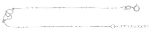 Naisten hopeanilkkakoru kahdella sydämellä. Nilkkakorun venetsiaketjua koristavat renkaan muotoiset koruosat. Nilkkaketju on kätevästi säädettävissä pituuksiin 23 cm ja 26 cm.
