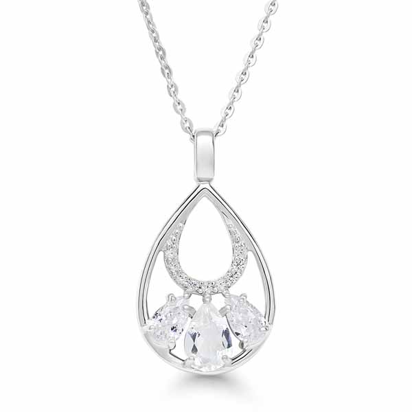 Pisaran muotoinen hopeariipus kirkkailla zirkonia-korukivillä. Hopeariipuksen koko on 12 x 16,5 mm. Hopeaketju on kätevästi säädettävissä pituuksiin 40-45 cm. Valmistusmateriaali on 925 sterling-hopea.