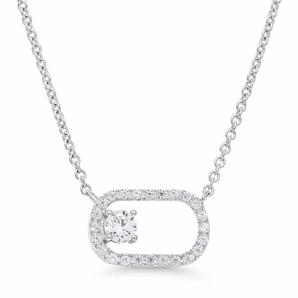 Kaunis soikion muotoinen hopeariipus kirkkailla zirkonia-korukivillä. Hopeaketjun pituus on 45 cm. Hopeariipuksen koko on 12,5 mm. Valmistusmateriaali on 925 sterling-hopea.
