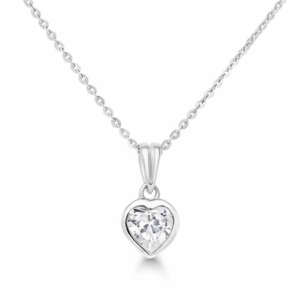 Sydämen muotoinen hopeakaulakoru kirkkaalla zirkonia-korukivellä. Hopeariipuksen koko on 7,2 x 7,6 mm. Hopeaketju on kätevästi säädettävissä pituuksiin 40-45 cm. Valmistusmateriaali on 925 sterling-hopea.