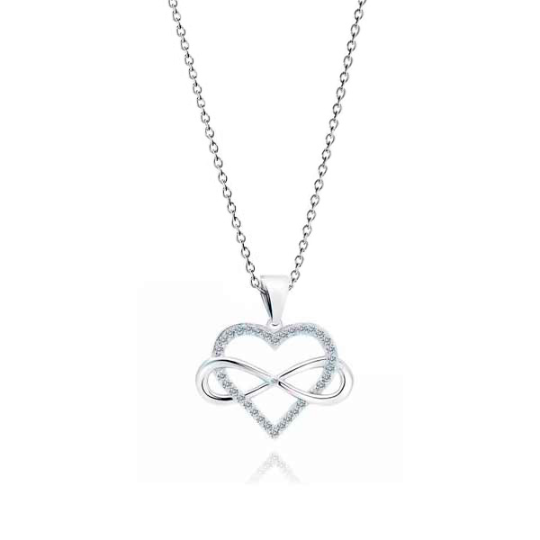Hopeinen sydänkaulakoru säkenöivillä kirkkailla zirkonia-korukivillä. Sydänriipus on kooltaan 24 x 24 mm ja sitä koristaa äärettömyys-symboli. Hopeisen ankkuriketjun pituus on valittavissa. Valmistusmateriaali on laadukas nikkelitön 925 sterling hopea. Siro hopeinen kaulakoru on täydellinen asuste jokapäiväiseen käyttöön!