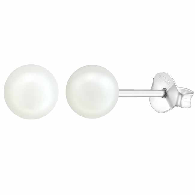 Hopeiset helmikorvakorut 6 mm