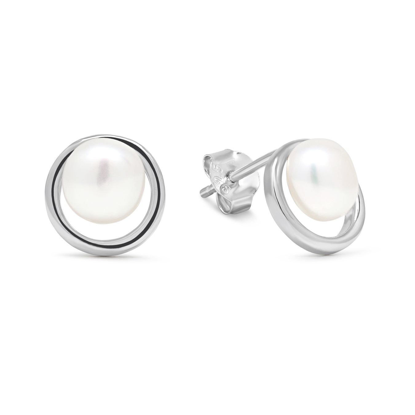 Klassisen kauniit helmikorvakorut. Makeanveden viljeltyä helmeä ympäröi hopeinen rengas, korvakorun materiaali 925 sterlinghopea. Kiinnitys tappikiinnitys.