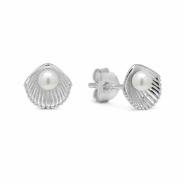 Ihastuttavat hopeiset helmikorvakorut simpukan muodossa vaaleilla helmillä. Korvakoruissa on tukeva ja luotettava tappikiinnitys. Materiaali on nikkelitön 925 sterling-hopea.