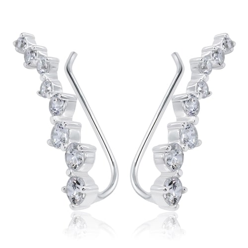 Säihkyvät ja trendikkäät hopeiset kiipijät, jotka on koristeltu kirkkailla zirkonia-korukivillä. Kiipijäkorvakoruissa on pitkänomainen koukkukiinnitys, jonka avulla korvakoru "kiipii" tyylikkäästi korvalehteä pitkin. Korvakorujen leveys on noin 6,5 mm ja pituus noin 22 mm. Valmistusmateriaali on laadukas nikkelitön 925 sterling hopea.