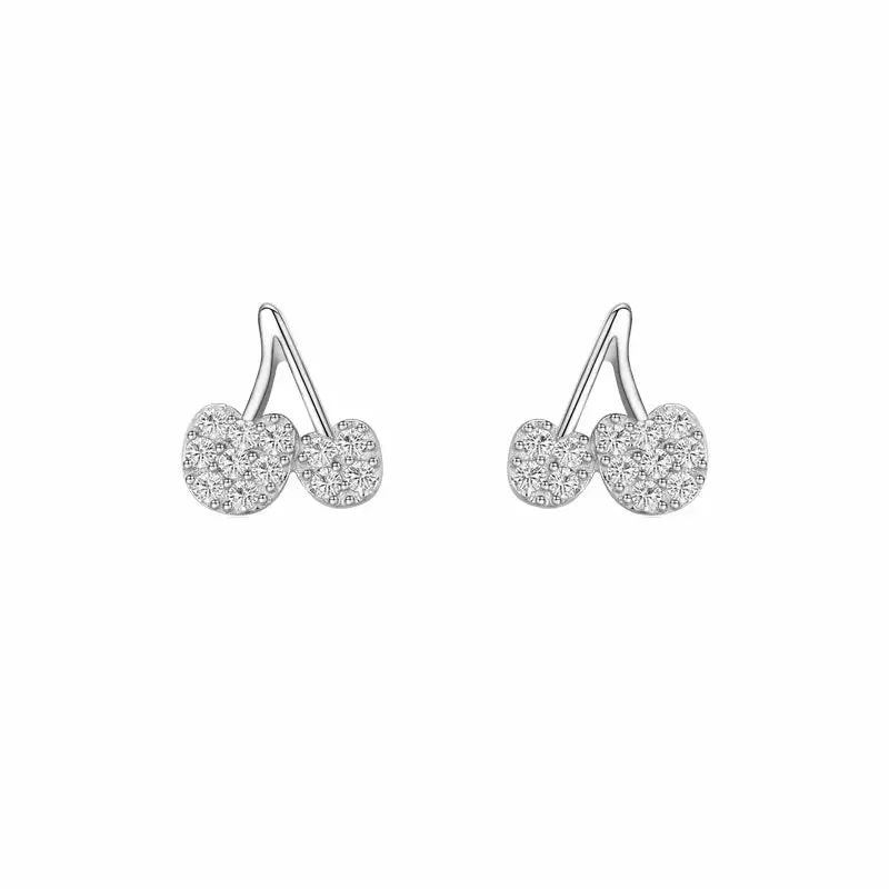 Sirot ja leikkisät hopeakorvakorut, jotka on muotoiltu suloisten kirsikoiden muotoon. Kirsikat on koristeltu kirkkailla, säihkyvillä zirkoneilla, jotka tuovat koruun ihastuttavaa kimallusta. Korvakorun koko on noin 8 x 8,5 mm. Korvakoruissa on tappikiinnitys ja ne on valmistettu laadukkaasta nikkelittömästä 925 sterling-hopeasta.