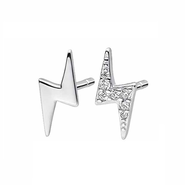 Naisten hopeiset korvakorut tyylikkäillä salaman välähdyksillä. Toisessa korvakorussa on sileä hopeapinta ja toista koristavat säihkyvät kirkkaat zirkoniat. Korvakorujen koko on 6 x 11 mm ja niissä on luotettava tappikiinnitys. Valmistusmateriaali on laadukas nikkelitön 925 sterling hopea. Sirot hopeiset nappikorvakorut kulkevat erinomaisesti mukana arjessa ja sopivat moneen tyyliin!