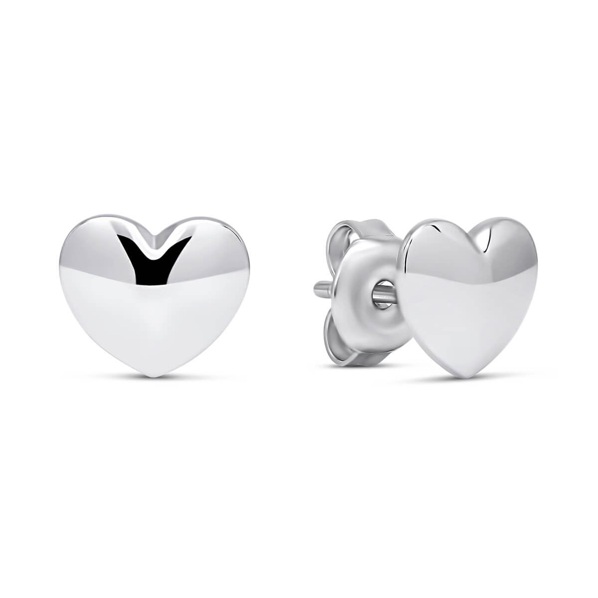 Hopeiset sydänkorvakorut kiiltävällä hopeapinnalla. Korvakorun koko on 8 x 9 mm. Nämä nappikorvakorut on valmistettu laadukkaasta 925 hopeasta. Korvakoruissa on tappikiinnitys.