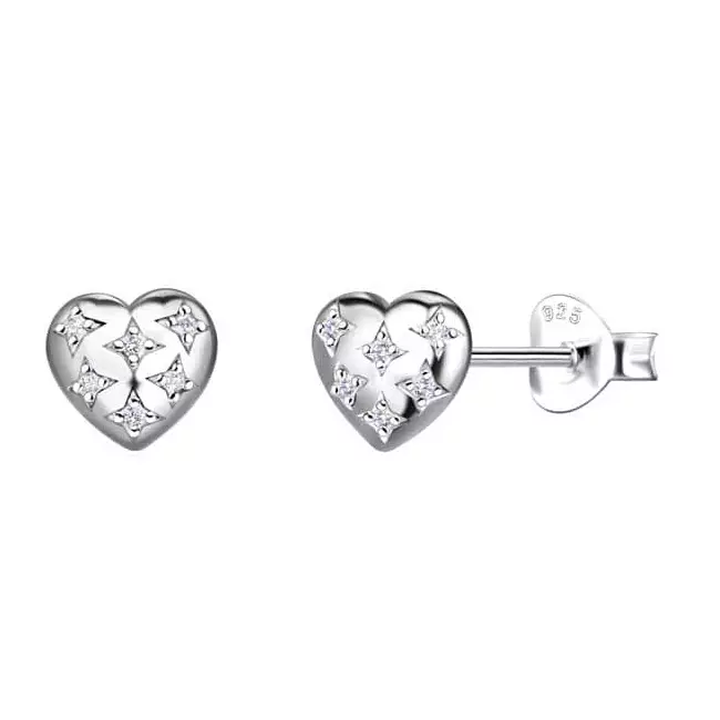 Hopeiset korvakorut sydän säihkeillä Sydämen muotoiset hopeiset korvakorut kirkkailla zirkonia-korukivillä säihkeiden muodossa. Sydänkorvakorun koko on 6 x 6 mm. Näissä siroissa korvakoruissa... Lue lisää