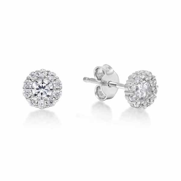 Hopeiset korvakorut zirkonia-korukivin koristeltuna. Korvakoruissa on tukeva ja luotettava tappikiinnitys. Valmistusmateriaali on nikkelitön 925 sterling-hopea.