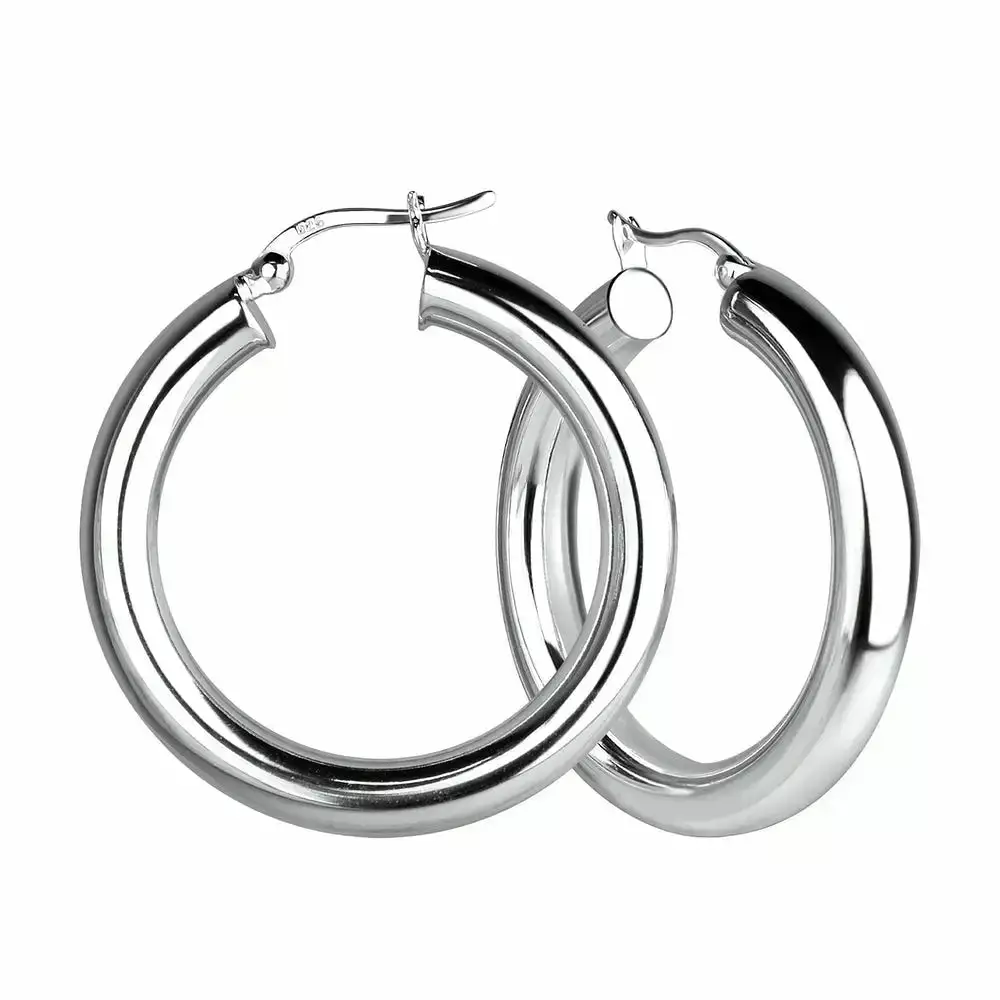 Leveät hopeiset korvarenkaat hieman mattapintaisena. Korvakorun pinta ei ole täysin kiiltävä, mutta ei täysin mattapintainenkaan. Korvakorun koko on suurehko 5 x 35 mm. Korvarenkaissa on kätevä saranakiinnitys. Korvakorujen valmistusmateriaali on laadukas nikkelitön 925 sterling hopea.