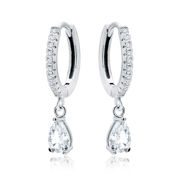 Hopeiset korvarenkaat roikkuvilla pisaran muotoisilla zirkoneilla