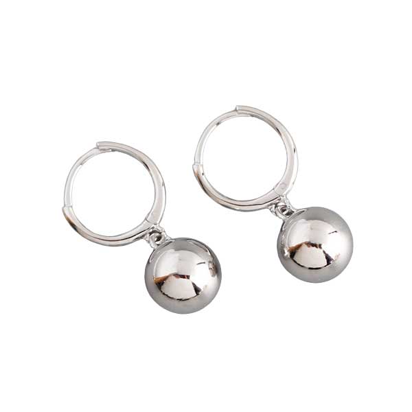 Hopeakorvarenkaat roikkuvilla palloilla. Korvakorun kokonaiskorkeus roikkuvan pallon kanssa on noin 23 mm. Korvarenkaan ulkohalkaisija on noin 11 mm. Saranakiinnitys.
