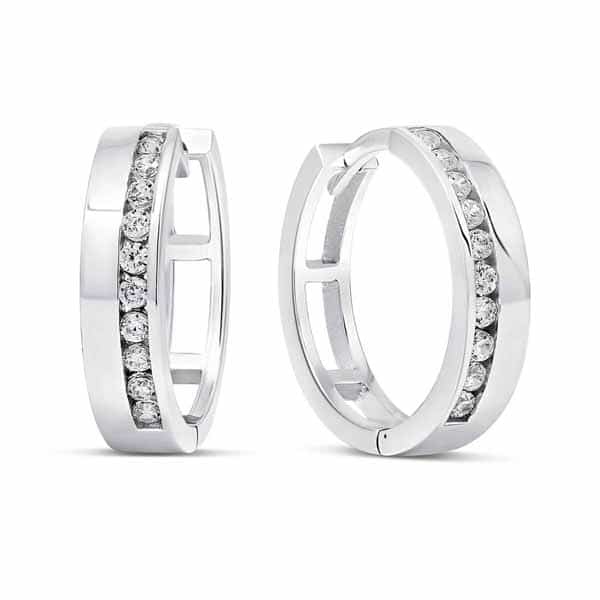 Hopeiset rengaskorvakorut kirkkailla zirkonia-korukivillä. Korvarenkaan halkaisija on 14 mm. Korvakoruissa on kätevä saranakiinnitys. Materiaali on laadukas 925 sterling-hopea.