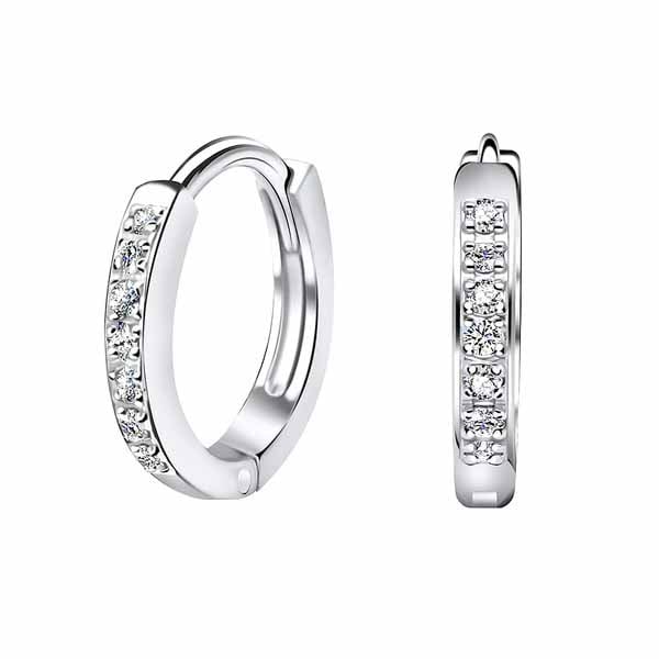 Kauniit hopeakorvarenkaat kirkkailla zirkonia-korukivillä. Rengaskorvakorujen leveys on 2 mm ja halkaisija 12 mm. Korvakoruissa on kätevä saranakiinnitys. Valmistusmateriaali on laadukas nikkelitön 925 sterling hopea. Klassiset hopeiset korvarenkaat täydentävät asun kuin asun!